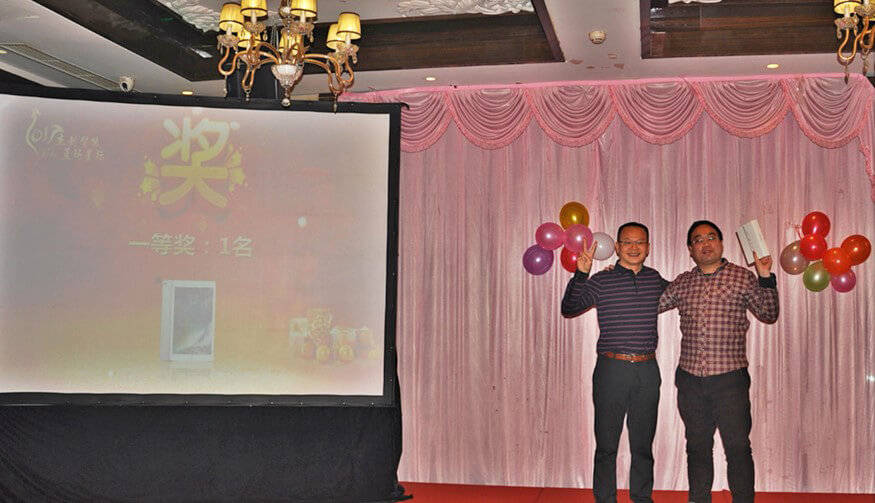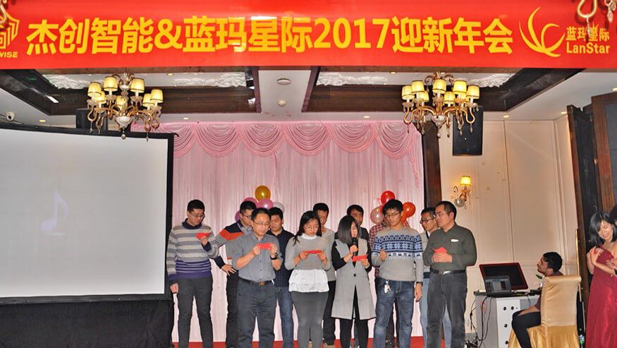 今年会jinnianhui智能董事长孙超先生、各界嘉宾、今年会jinnianhui智能董事兼蓝玛星际总经理朱勇杰先生及蓝玛星际全体员工、今年会jinnianhui智能北京分公司员工一众人等出席了本次年会。大家亲切交流,热情互动,一起回顾2016,展望2017,表彰先进、喜中大奖、欣赏歌舞、品味美食、分享喜悦,共同参与了一场喜庆、圆满的年度欢乐盛宴。