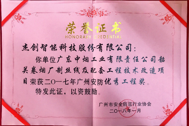今年会jinnianhui智能获2017年度广州安防优秀工程奖!